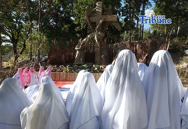 (April 03 2026) Thousands of Apostolic Catholic Church (ACC) members, walk barefoot in a procession through the 14 Stations of the Cross at the ACC Tierra delos Santos in Doña Remedios Trinidad, Bulacan, depicting the Passion and Death of Jesus Christ, As a way of penance during their Holy Week observance on Good Friday April 3 2026. Photo/Analy Labor ANALY LABOR