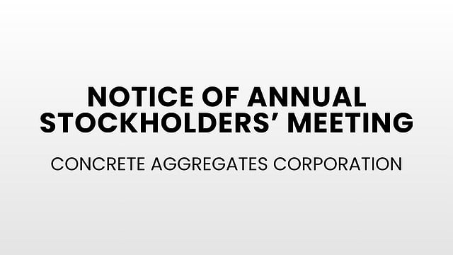 Concrete Aggregates Corporation - Notice of Annual Stockholders’ Meeting