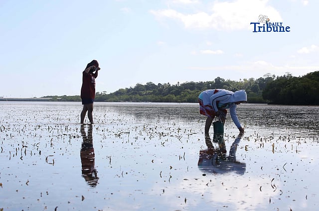 (April 09 2026) Residents took advantage the low tide at the seashore of Ubayon Loon Bohol to search a conch shell or (Aninikad) to eat, some others searching to sold at the market to make a profit, for their daily expenses on Thursday April 9 2026. Photo/Analy Labor
