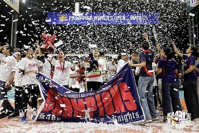 Joralyn Panangin delivered the dagger with a service ace to seal the title for the Lady Knights.