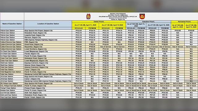 BAGUIO CITY — Motorists in Baguio City saw a mix of slight fuel price decreases and continued limited availability of some products, based on the latest monitoring of the Baguio City Police Office (BCPO).