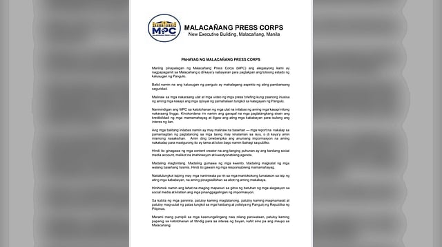 Reporters covering President Ferdinand Marcos Jr., or the so-called Malacañang Press Corps (MPC), have denounced allegations that they are being paid or used by the administration to conceal the real score on the Chief Executive’s health.