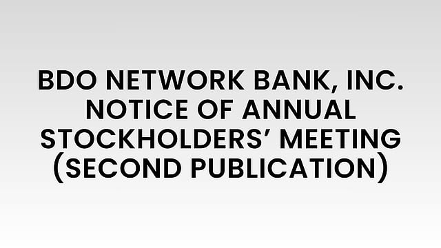 The Annual Stockholders' Meeting of BDO Network Bank, Inc. will be conducted virtually on May 8, 2026, Friday, at 11:00 am.