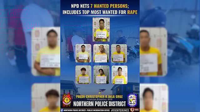 Northern Police District (NPD) authorities arrested seven wanted individuals, including several high-ranking fugitives, during a coordinated “Warrant Day” operation across northern Metro Manila.