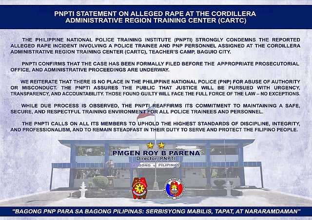 BAGUIO CITY — The Philippine National Police Training Institute condemned an alleged rape incident involving a police trainee at a training facility in Baguio City.