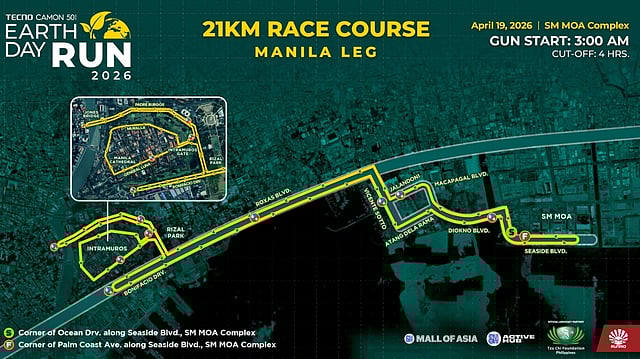 Road closures will be implemented in Manila starting at 1 a.m. on Sunday, 19 April, in line with the Earth Day Run 2026.