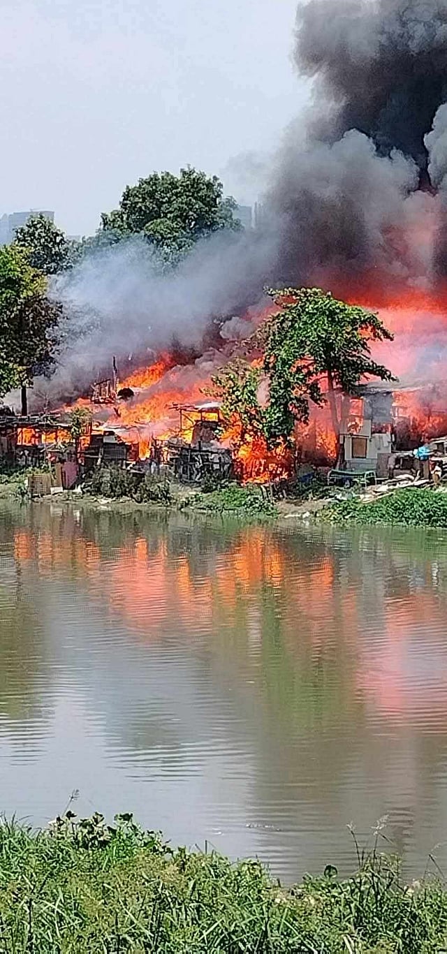 The fire was declared under control and eventually extinguished at around 3:00 p.m.