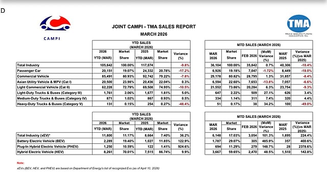 However, March 2026 sales were down 10.4 percent from 40,306 units recorded in March 2025.