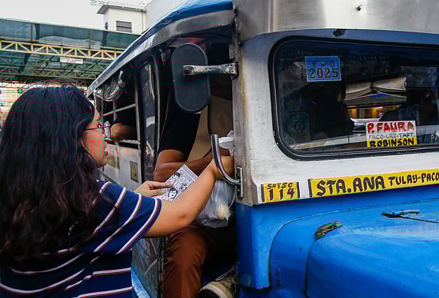 Students distribute fresh vegetables, pastil, and flyers to PUJ drivers at the intersection of Agoncillo and Pedro Gil Streets in Manila on 21 April 2026. The initiative stands in solidarity with a transport sector hit hard by the ongoing oil crisis.