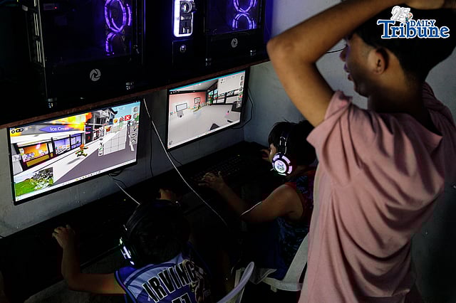 Children play the online video game Roblox at a computer shop in Tondo, Manila, on Friday, 24 April 2026. The popular U.S.-based game was almost banned from the country following reports of rising child safety violations, but the decision was later ruled out after the company’s executives agreed to implement stricter safety measures in a meeting with the DICT.