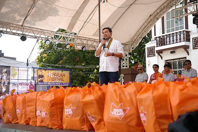 Senator Mark Villar heads the distribution of grocery packs and rice sacks to jeepney drivers, operators, and delivery rider MARKalinga: Welfare Assistance Program for Drivers on Saturday, 25 April, 2026 in Pila, Laguna.| Aram Lascano